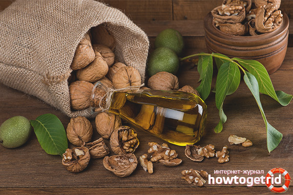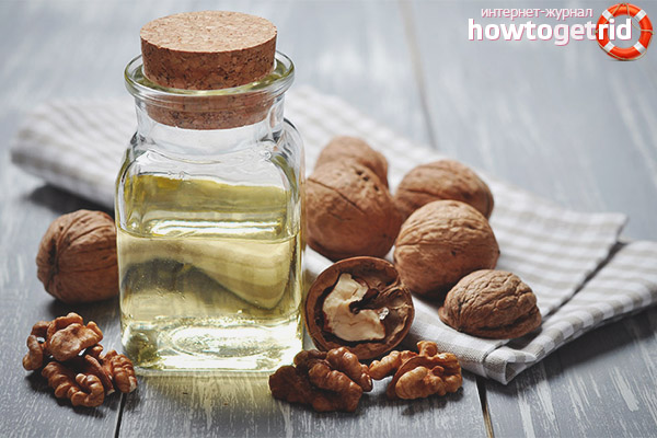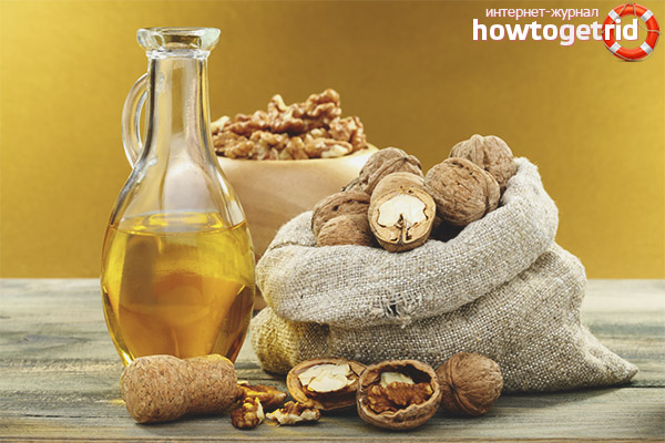 Natürliches Walnussöl ist mit verschiedenen nützlichen Substanzen gefüllt, daher positioniert es sich bei der Herstellung traditioneller und traditioneller Medizin von der besten Seite. Es gibt verschiedene Arten und Methoden der Verarbeitung und Verwendung des Produkts.