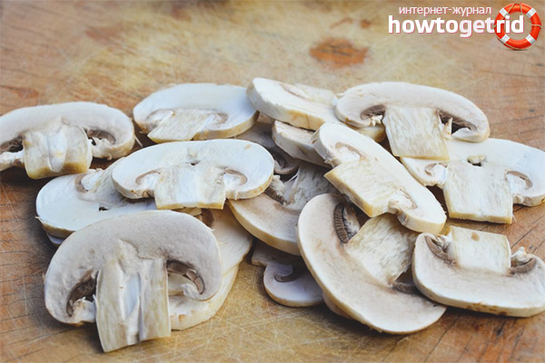 Das Hauptaugenmerk liegt auf frischen Salaten, in denen nützliche Substanzen gespeichert werden und der Körper sie maximal bekommt. Reinigen Sie dazu die Pilze, wischen Sie sie gegebenenfalls mit einem feuchten Tuch ab. Es ist unerwünscht, sie zu waschen, sie nehmen schnell Feuchtigkeit auf und werden locker.