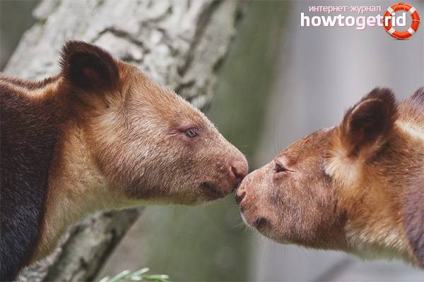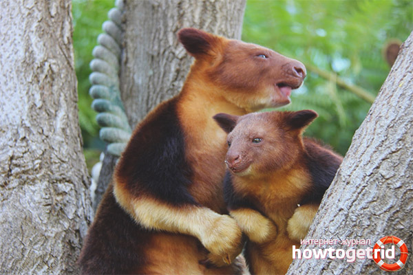 Wood Kangaroo refers to the inhabitants of New Guinea and Australia. These representatives differ from the self-like not only in their habits, but also in their mode of existence. If the rest of the relatives spend most of their life on earth, then the discussed individuals hide in the crowns of the trees. Actually for this reason, they got their name. Animals can live upstairs long enough, eat, sleep and have fun there. The main enemy is human activity, this species is on the verge of extinction.