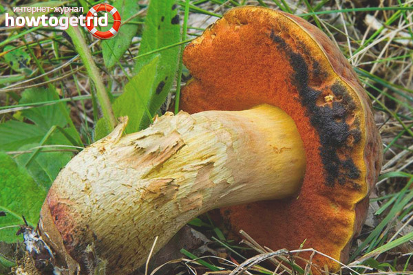 In appearance, the oak tree is very similar to the satanic mushroom. Confusing them is very dangerous, as Satanic is very poisonous. A distinctive feature of the Kele oak tree is that its flesh turns blue when damaged. He also has red pores, and red specks are visible on the leg.