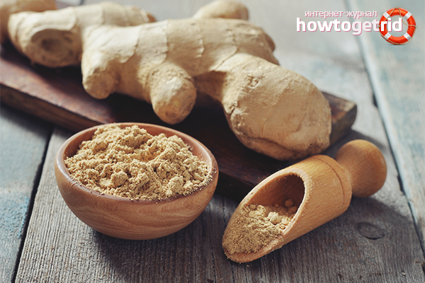 - Combine in a cup of 120 ml. fresh ginger juice and 25 gr. powder from the root of the plant. Protect your hands with cellophane gloves. Apply a homogeneous composition with massaging movements on the head.