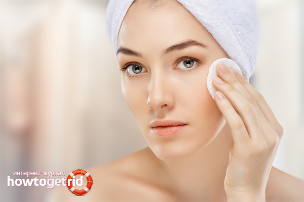- Every day, after removing makeup, wipe your face with a cleansing tonic on a weak alcohol infusion. This will help to slightly reduce oily skin.