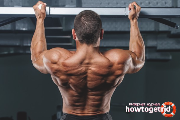 A very effective exercise that is very popular for inflating your back for a long period of time. You need a horizontal bar, which you can equip at home, in the doorway. Pulling up must be done all the way, that is, until the moment when the chin is above the crossbar. Pay special attention! Thumbs should not grab the bar, otherwise some of the load goes to the biceps.