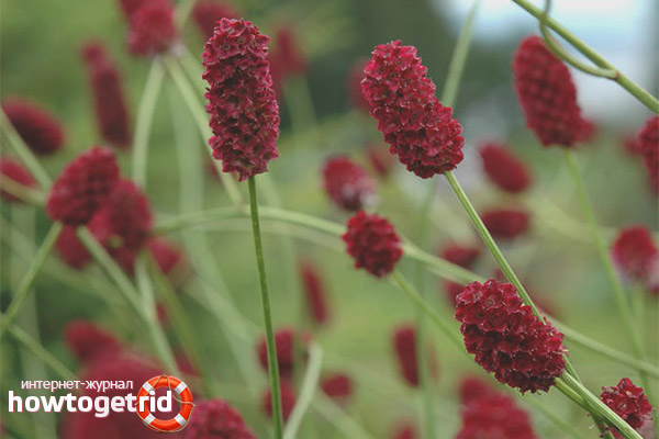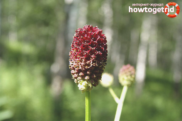 This plant is a perennial and belongs to the family Rosaceae. It grows up to 80, less often up to 120 cm. Thanks to the well-developed root system, it is the root - the main remedy. The stem of the hemorrhage is long and thin, branched at the top, has basal leaves that differ in a shape resembling feathers. They are unpaired and long-arched. The flowers are red, but almost dark, because the plant calls the red-headed or black-headed. They grow on long pedicels, and are collected in heads. Flowering occurs in June - August.