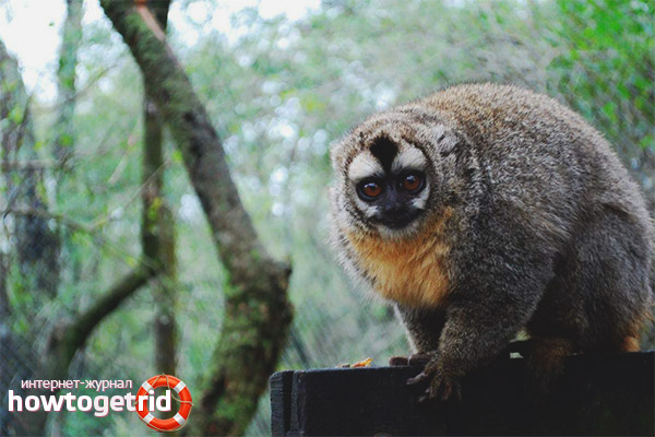 Nocturnal monkeys have another official name - myrikins. They are quite miniature when compared with other primates. Body length - from 23 to 37 cm, and very small weight - does not exceed a kilogram.