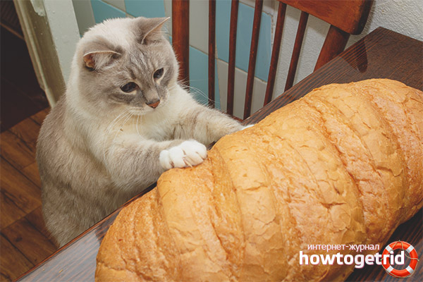 In reasonable quantities, bread can be given to the animal. At the same time, baked goods with raisins or garlic can harm cats, since these ingredients have a toxic effect on them. Onions and garlic can cause severe pet anemia, and nuts can cause indigestion.