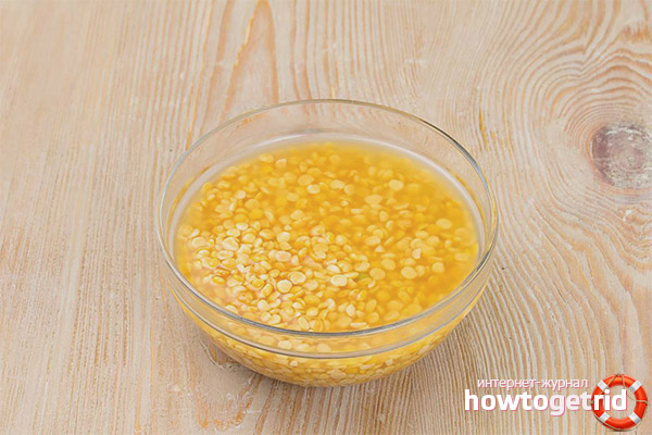 - To loosen the structure, you need to fill the peas with filtered water, observing a ratio of 1 to 2 (as much as possible). There is another scheme for which 1 liter. water relies 0.5 cup pea culture.