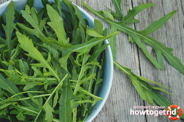 Arugula well supports the body during diets and physical activity. To lose weight by eating these juicy leaves, it is enough to reduce the content of heavy carbohydrates and fats in the diet, consume protein foods and vegetable dishes.