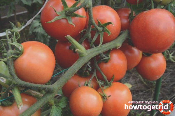 It is recommended to decontaminate the soil before planting with a potassium permanganate solution and feed it with organic fertilizers. A trellis or peg is placed to each bush, so that later a plant is tied to it. Otherwise, it can break under the weight of tomatoes.
