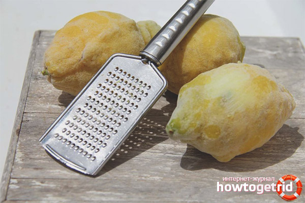 Frozen lemon is ground using a grater, shavings (1 tbsp. L.) Are introduced into a container of water (100 g). I use this infusion in the morning, before eating.