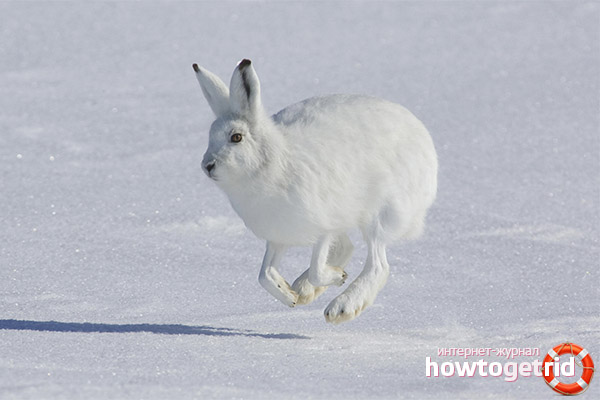 In the whale, the most developed sense organ is the rumor, which timely alerts him to the approach of a predator or any other misfortune. Vision and sense of smell are much weaker, and if a person stands nearby, even in an empty area, the whitefish can sometimes come quite close. In fact, the only safeguard against the pursuer is the ability to quickly run away. Interestingly, the haunted hare, only looking up a little from the pursuit, makes tricks. Hares over the course of evolution have learned to get away from predators with incredible dexterity, cunning and flawless disguise. The running speed can be compared by the speed of a traveling car, and this is 50-60 km / h. With all this, without slowing down, they can make sharp turns, forcing the enemy to slow down in order to re-make a clever trick.