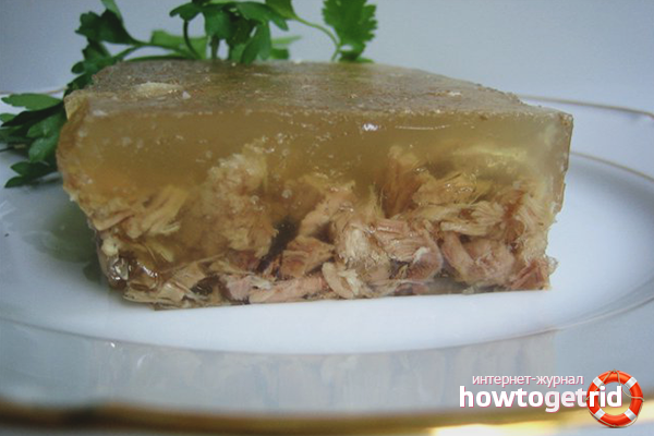 Si une telle déception vous arrive - peu importe. La situation pourrait bien être corrigée. Pour cela, vous avez besoin de plus d'abats. Certaines femmes au foyer font l'erreur de faire bouillir à nouveau de l'aspic non mûr pour l'épaissir. Ils croient que le bouillon deviendra plus épais et qu'il gèlera certainement. Ce n'est pas vrai, un tel bouillon ne gèlera pas, car toutes les substances gélatineuses meurent simplement avec une forte ébullition. Si la gelée n'est pas gelée, vous devez le faire.