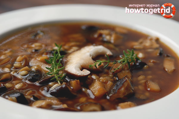 - Pré-tremper les champignons secs, en les laissant quelques heures dans l'eau potable à température ambiante. Après le temps spécifié, faites bouillir les matières premières. Ne videz pas le liquide dans lequel les champignons languissent. Filtrez l'eau et laissez refroidir.