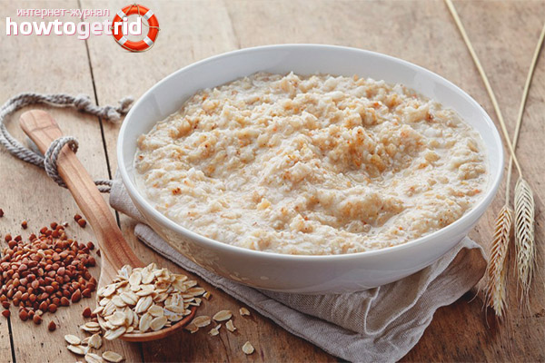 - La première phase est de cinq jours. Le menu se compose de plats préparés à partir de 60 g de céréales et 150 ml de lait avec un faible pourcentage de matières grasses. Le lait peut être remplacé par de l'eau plate.
